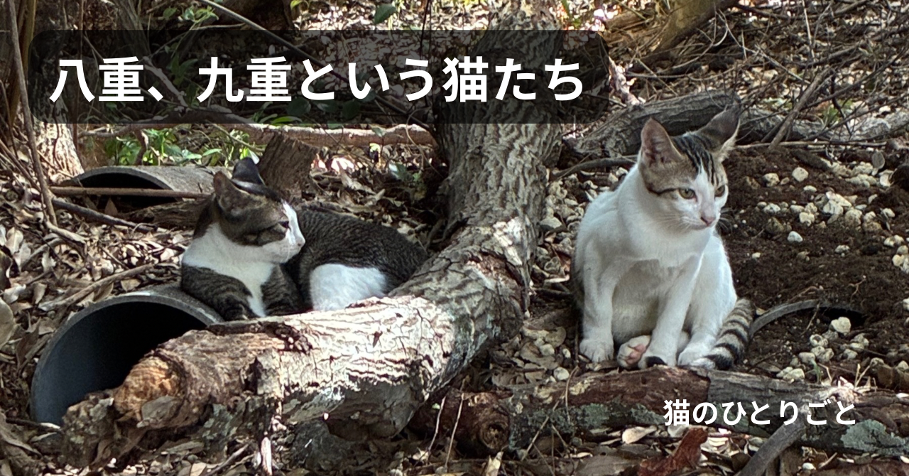 相方の車を待っているあいだ、私は猫たちに名前を付けていた。歩が数字の6、七海が7にちなんだ名前だから、この子たちは八重(やえ)、九重(ここのえ)。