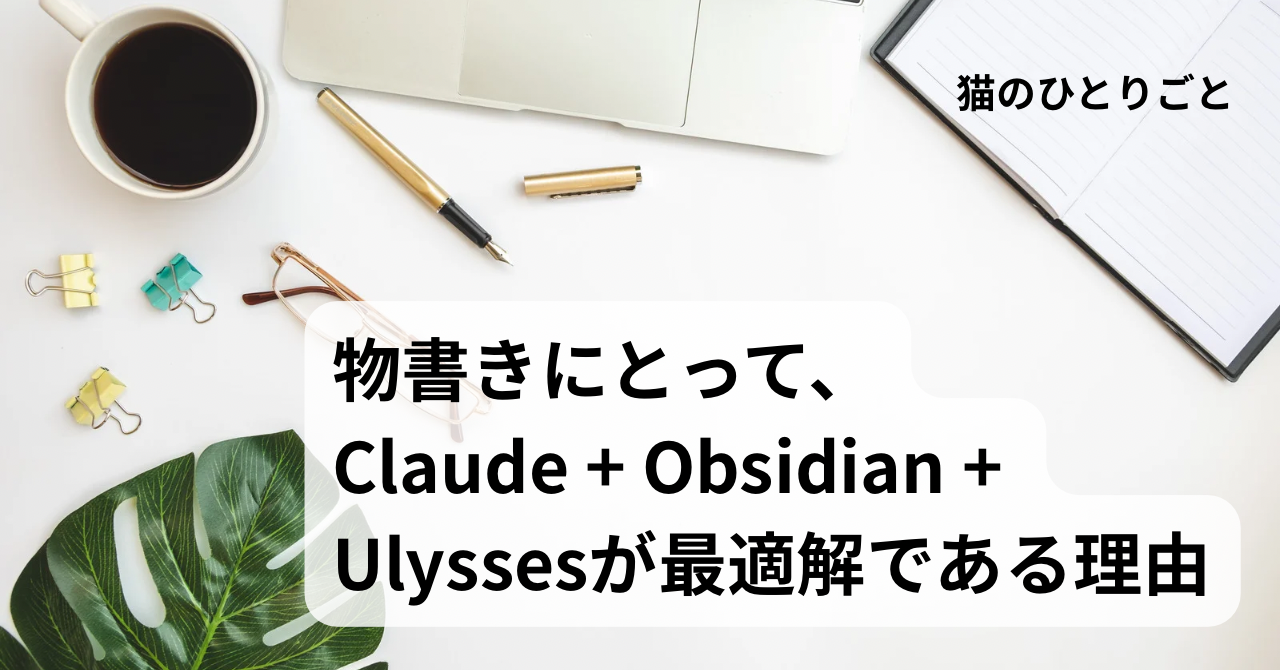 いまの私にとっては、Claude、Obsidian、Ulyssesという組み合わせが、物書き用途では最適なソリューションと断言できる。